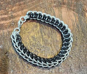 This chainmail bracelet is handwoven using 18-gauge Anodized Aluminum jump rings.