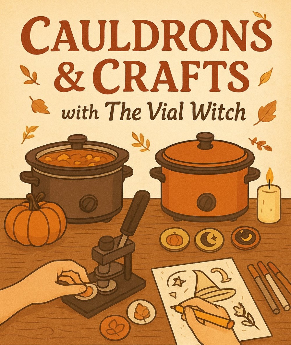 ✨ Make personalized buttons with our button press—each participant receives 5 blanks to create any design you like (feel free to bring your own small crafting supplies or stickers!)Cost:Come for the cauldrons, stay for the crafts, and leave with a little magic in your pocket!