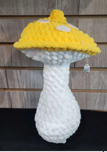 These adorable handcrafted crochet mushrooms blend soft textures with a playful design, creating a unique and cozy decorative piece.