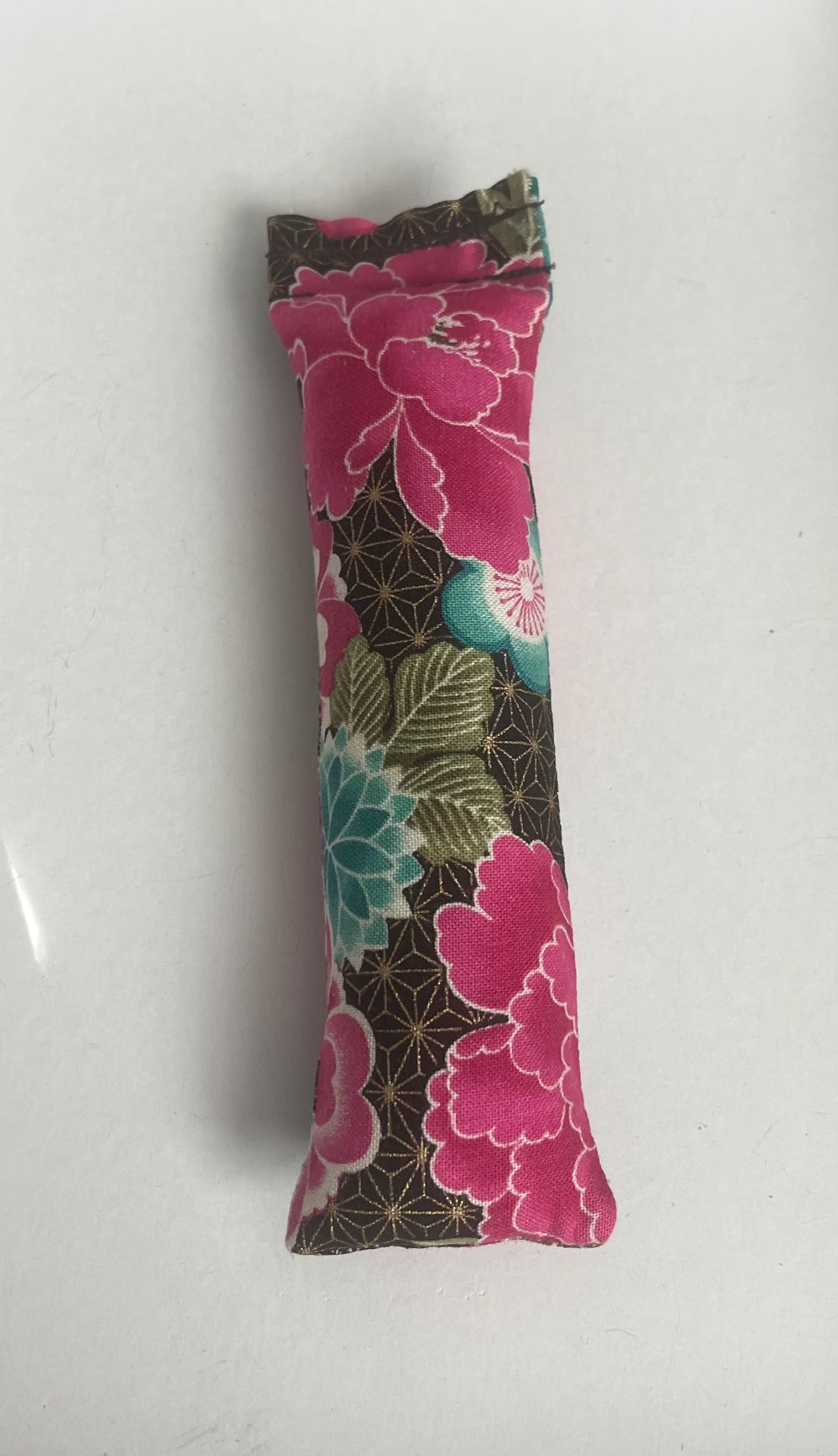 Add a pop of personality to your cat’s playtime with this handcrafted Catnip Kicker Stick Toy, featuring a bold floral print in pink, teal, and black. Packed with 100% organically grown catnip and soft poly fiber fill, it’s designed for batting, kicking, and cuddling—all in one sleek, compact toy.