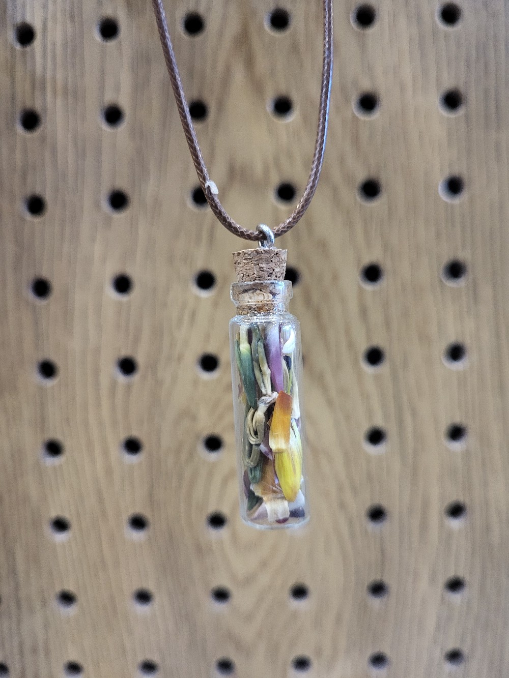 🌸 Looking for a necklace that captures the delicate beauty of nature? These glass bottle designs, filled with dried flower petals, offer a whimsical and heartfelt touch