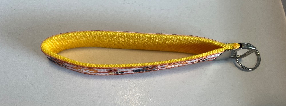 Wristlet Style Key Chain Yorkshire Terrier Dogs/Hearts, Paws, Stripes Grosgrain Ribbon Bright Yellow Cotton Webbing