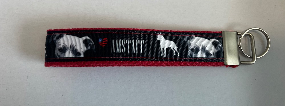 Wristlet Style Key Chain AMSTAFF Dogs Grosgrain Ribbon Red Cotton Webbing